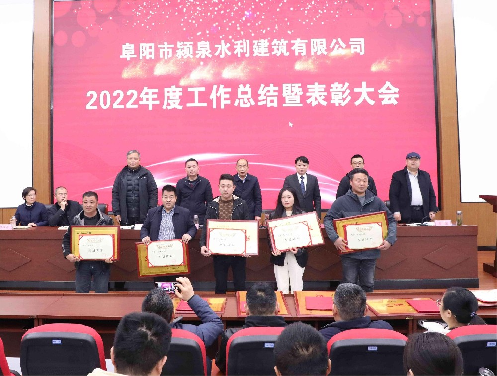 2023年2月27日,阜陽市潁泉水利建筑有限公司2022年度工作總結(jié)暨表彰大會在潁泉區(qū)委黨校順利召開。應(yīng)邀出席會議的有潁泉區(qū)水利局黨組書記、局長季超,潁泉區(qū)水利局黨組成員、設(shè)計室主任謝皓,公司領(lǐng)導班子成員韓記、孫雷、常猛、鄭明貴、胡向真,監(jiān)事長劉樹超等在主席臺就座,各項目部、科室負責人以及100多名職工參加會議。
